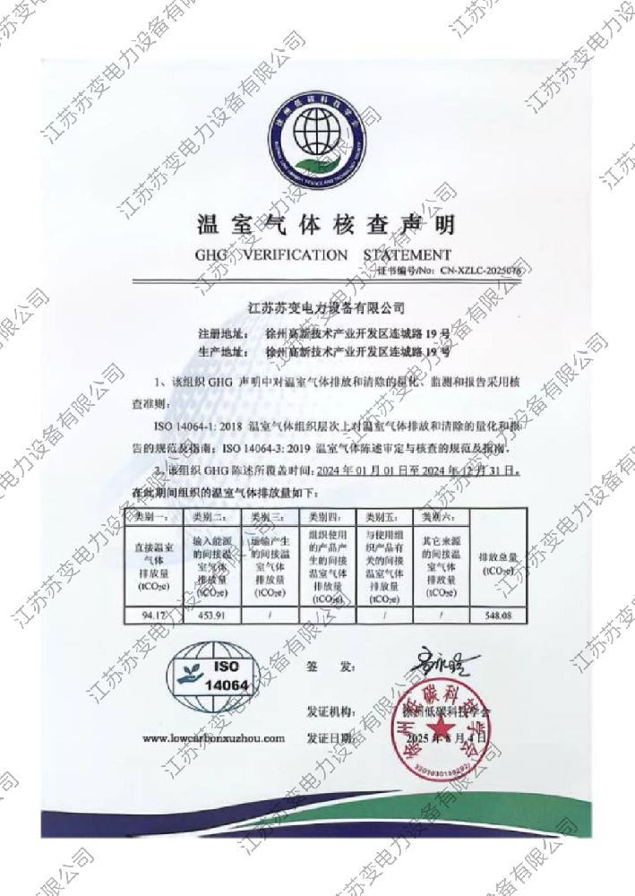 温室气体核查声明 2025-08-08